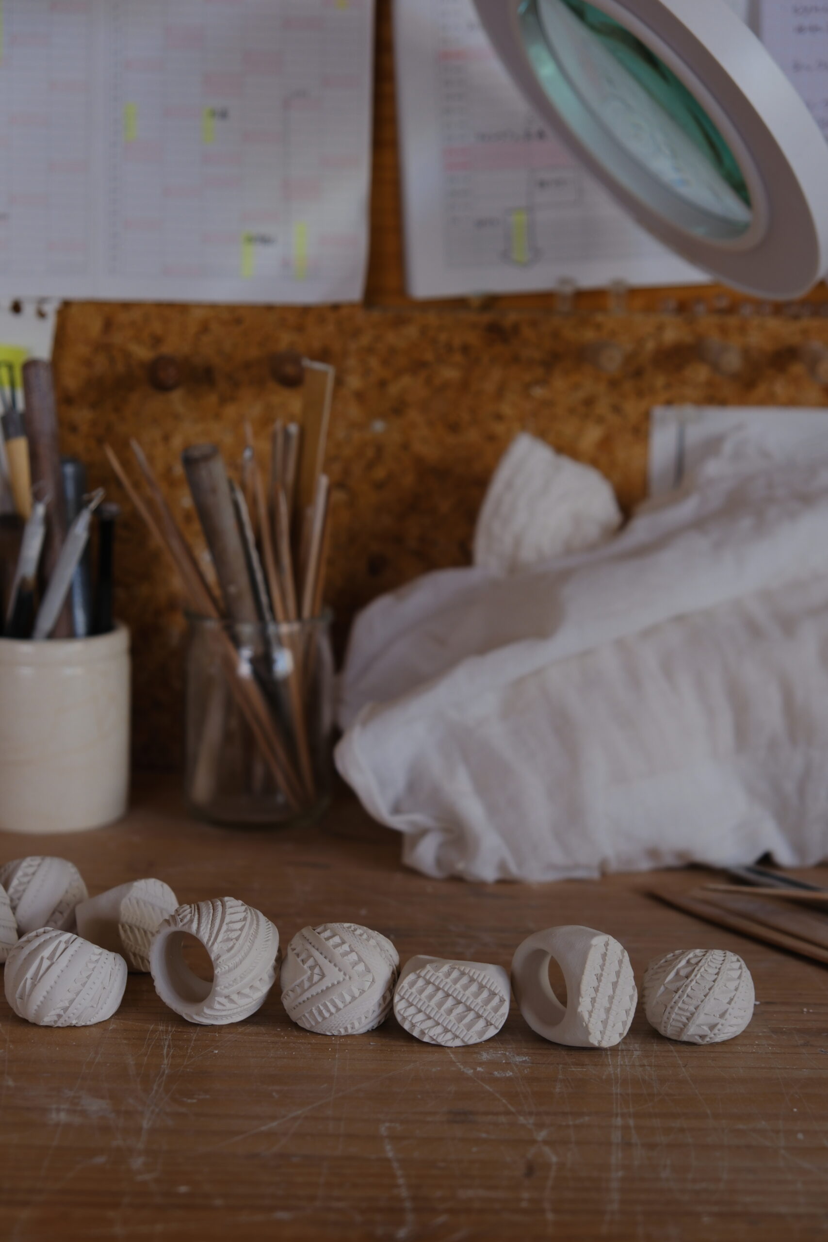 我將這些線條轉化到與寶石組成相近的陶瓷素材上,